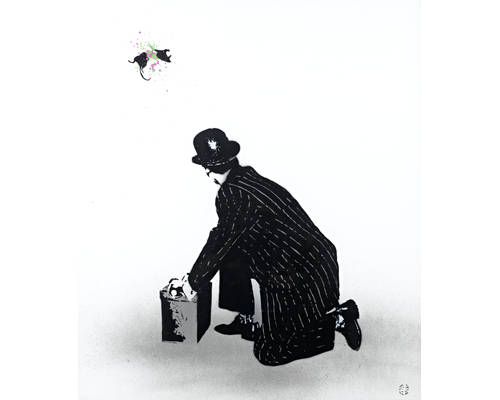 Stencil spray paint and acrylic on canvas