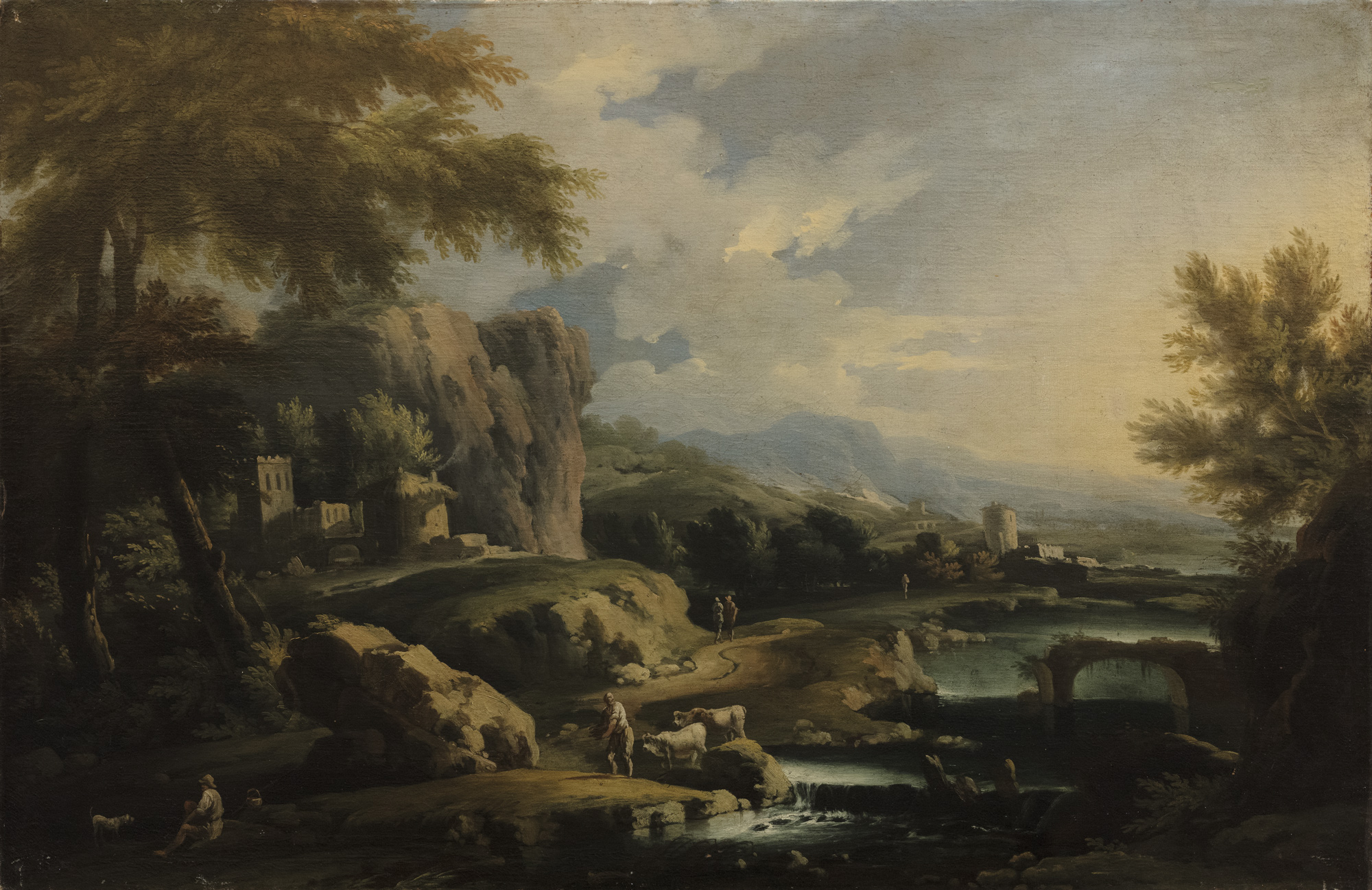 | Paesaggio fluviale con pastori, armenti e architetture | |