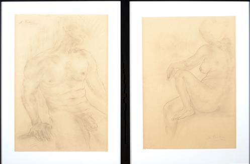 Two Nude Drawings, Female and Male