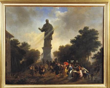 | L'IMPERATRICE JOSEPHINE ET SA SUITE VISITANT LA STATUE DE SAINT CHARLES BORROMMEE A ARONA SUR LES ILES DU LAC MAJEUR | |
