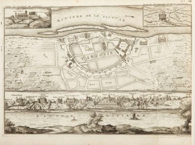 Plan i panorama Warszawy z planem i widokiem pałacu w Łowiczu