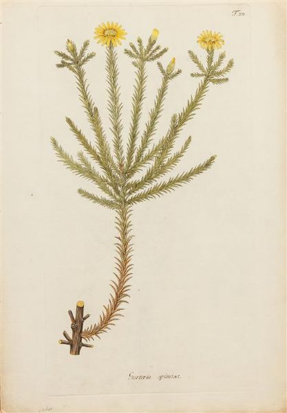 | Lactuca villosa, tab. 367, Othonna retrofracta, tab. 376, and Gorteria spinos, tab. 371 (three works from Plantarum rariorum hor | |