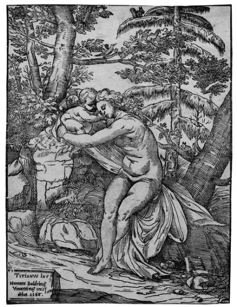 Venus und Amor in einer Landschaft