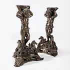 | A PAIR OF VENETIAN BRONZE CANDLESTICKS IN THE FORM OF PUTTI | |