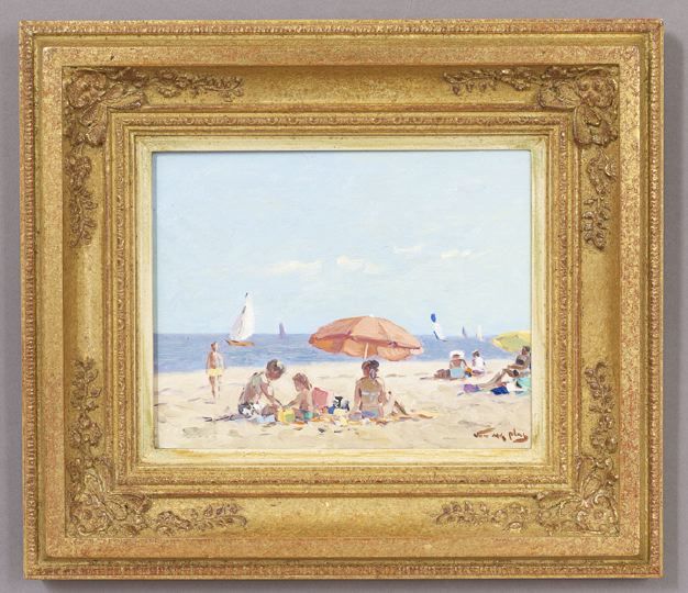 Beach Scene with Children Playing in the Sand