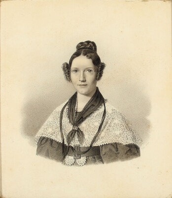 | Portrait of a young woman in a dark dress. | |
