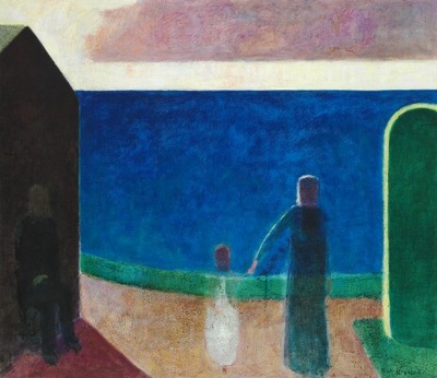 Figures by the sea, Bornholm. Signed Niels Lergaard. Oil on canvas. 88×101 cm. | |