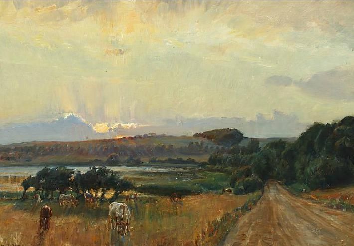 | Landscape with cows in the field, presumably near Skanderborg | |