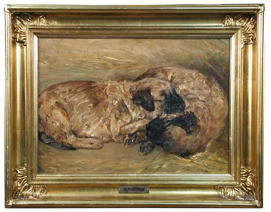 Two puppies sleeping, possibly Broholmers (Danish Mastiffs)