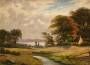 Landschaft mit Haus, Bach und See