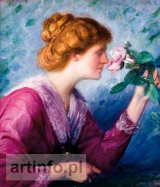 KOBIETA WĄCHAJĄCA RÓŻĘ