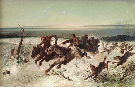 LE TRAINEAU ATTAQUE PAR LES LOUPS.