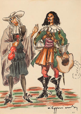 Nine costume designs for 'Le Bourgeois gentilhomme' by Molière