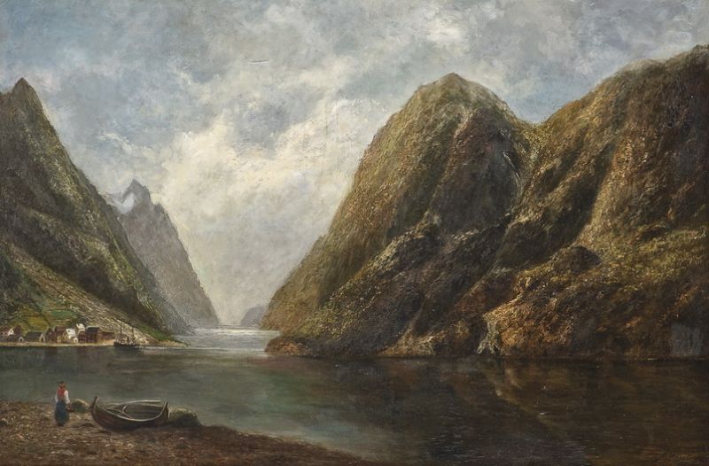 Fjordlandskap med folkeliv