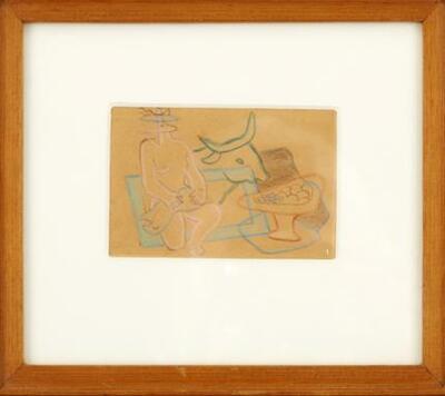 Tillskriven. Komposition med figur, tjur och fruktskål.