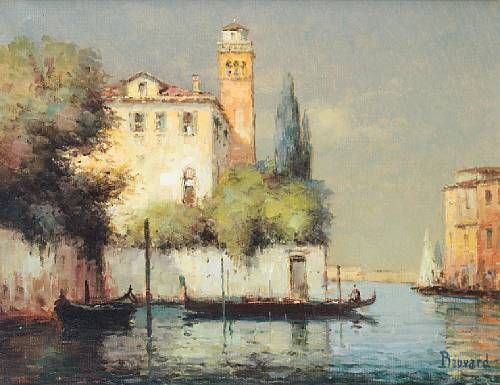 | A Venetian palazzo with Santa Maria Della Salute in the background; Venetian canal scene with fishing boats and gondolas a pair, | |
