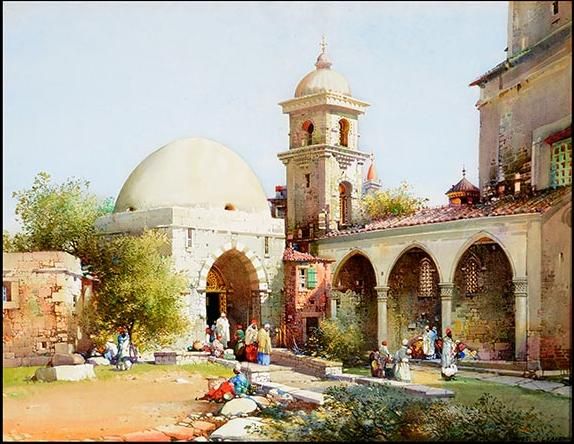 Arab Mosque Exterior with Figures