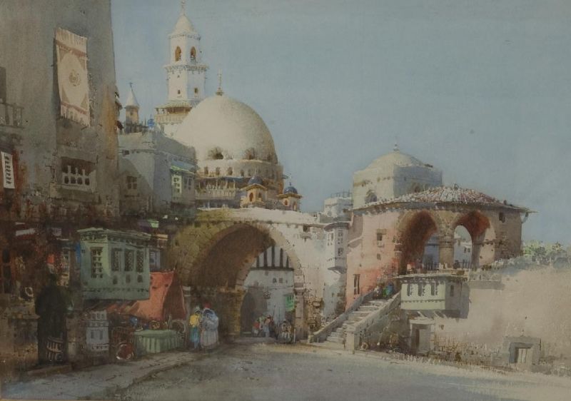 | NORTH AFRICAN TOWN SCENE WITH AN ARCH AND MOSQUE IN THE BACKGROUND | |