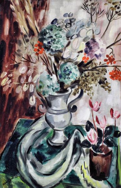 Still life with two vases of flowers