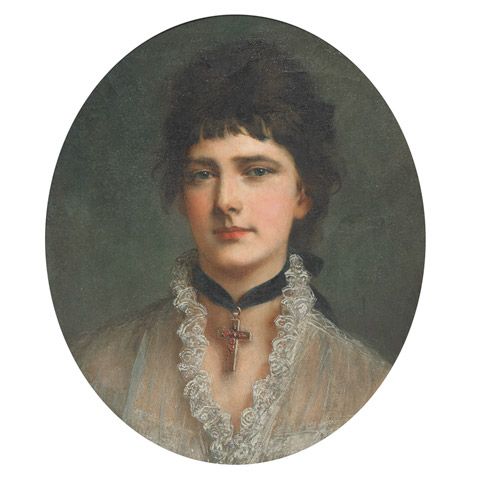 A BELLE EPOQUE LADY WEARING A BEJEWELLED CROSS