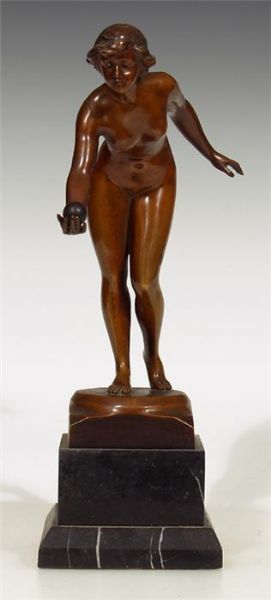Weiblicher Akt als Kugelspielerin, Ansatznaht des rechten Armes sichtbar