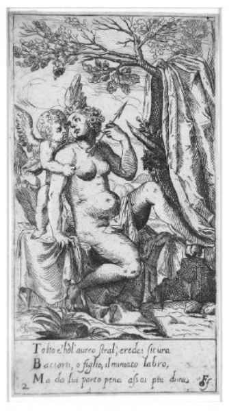 Sitzende Venus mit Pfeil und Amor unter einem Baum