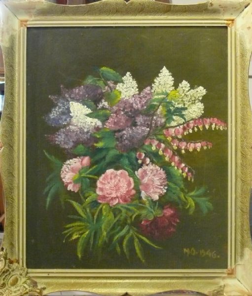 Blomsterstilleben. Syrén, pion och löjtnantshjärta.