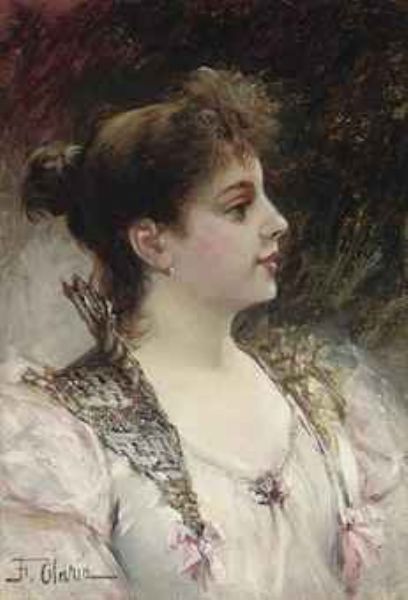 Portrait of a lady, bust-length, in white and pink dress