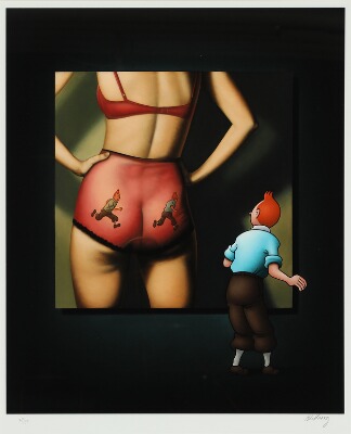 Tintin with back turned woman