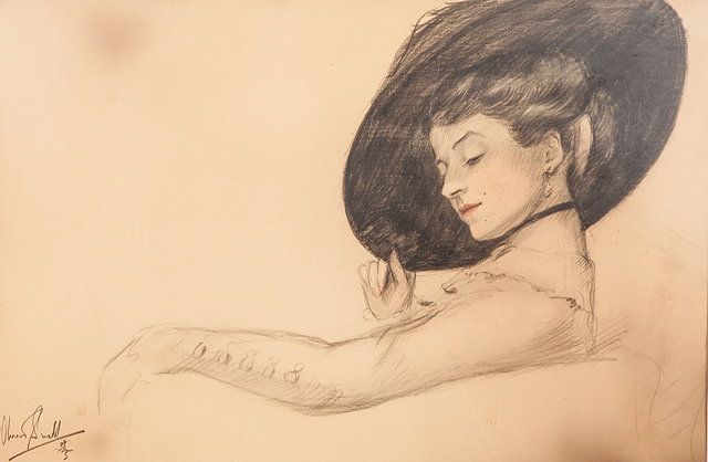 Portrait of Mrs Ida Cruikshank wearing a wide brimmed black hat