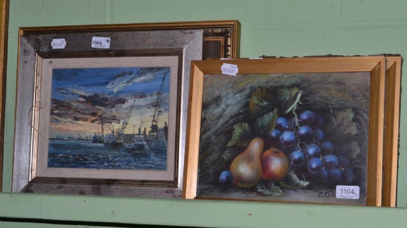 | a still life of apples in a basket, still life of grapes, apple and pear | |