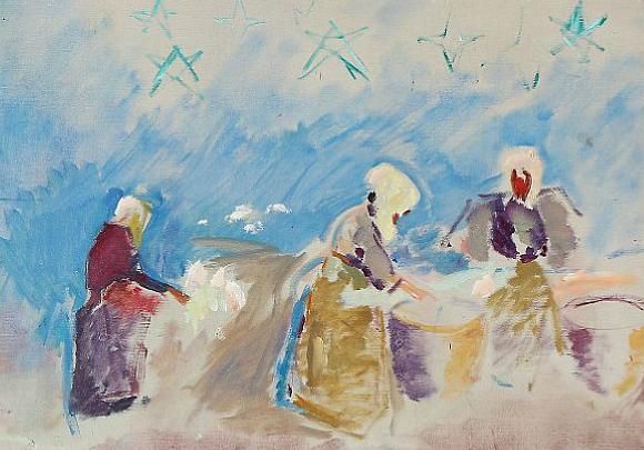 Koner ved et silderøgeri, Gudhjem Bornholm