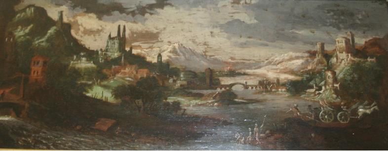 | A FANTASTIC LAKE LANDSCAPE WITH BUILDINGS AND FIGURES | |