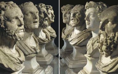 | A SET OF EIGHT CARVED MARBLE BUSTS OF MEN | |