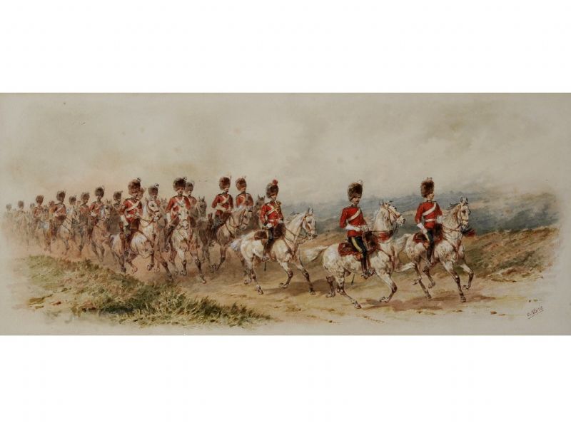 | THE ROYAL NORTH BRITISH DRAGOONS (SCOTS GREYS): UNDER MAJOR S. M. BROWNE, RETURNING TO CAMP ON DARTMOOR, 1879 | |