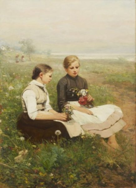 Flickor på blomsteräng