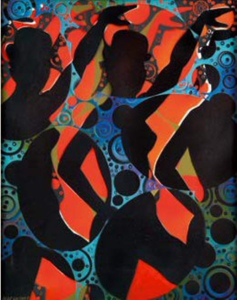 Danseuse en noir sur fond rouge orangé