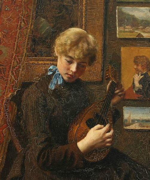 Interior with woman playing the mandolin