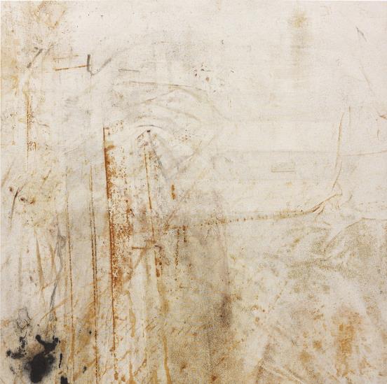 | Oil rust, engine oil, charcoal, cement on canvas | |