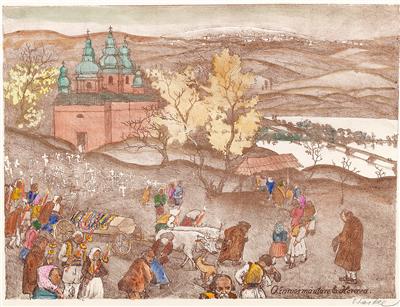 4 lithographs, hand coloured from the "Bucovina" portfolio