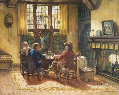 | In holländischem Stubeninterieur vier um einen Tisch versammelte Herren in Kleidung des 17 | |