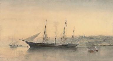 | The Royal Yacht Victoria and Albert (II) lying in Osborne Bay, below Osborne House, Isle of Wight | |