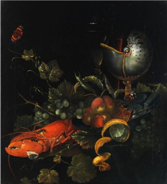 STILLEBEN MIT FRÜCHTEN, HUMMER UND NAUTILUS