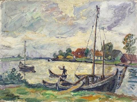 KÜSTENLANDSCHAFT MIT FISCHERBOOTEN