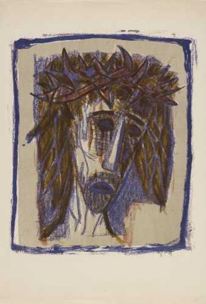 | Christus (Kopf, nach rechts blickend, Haare schulterlang, dunkel auf hellem Grund) | |