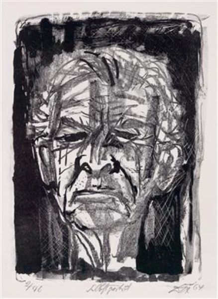 Selbstporträt (von vorn, vor dunklem Hintergrund)