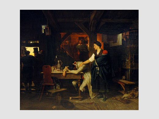 Der Spieler wird von seiner Frau aus der Wirtschaft abgeholt