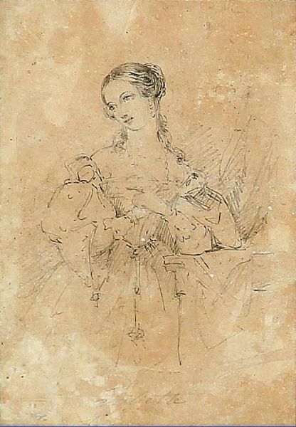 | Portrait of the Danish actress Juliette Price and Woman in National costume from Zealand. | |