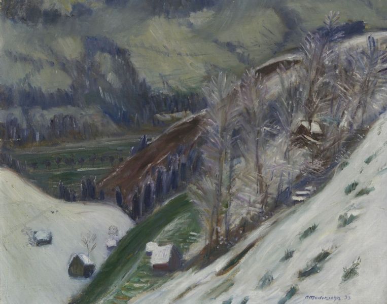 | Talblick nach Vorderhindelang (Kalblebündele mit Neuschnee). 1933 | |