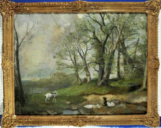 Hirte sitzt im Schatten eines Baumes, seine Ziegen ruhen an der Wasserstelle